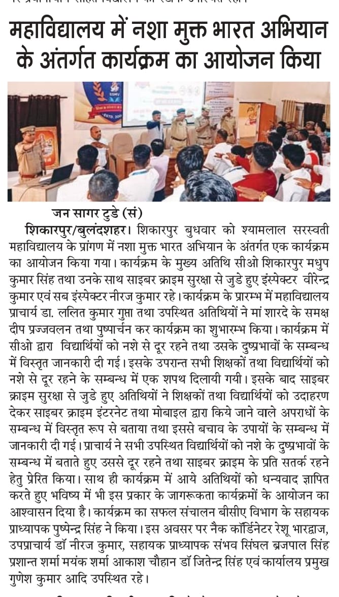 Anti Drug Day and Cyber Crime Awareness program on 13th August 2025