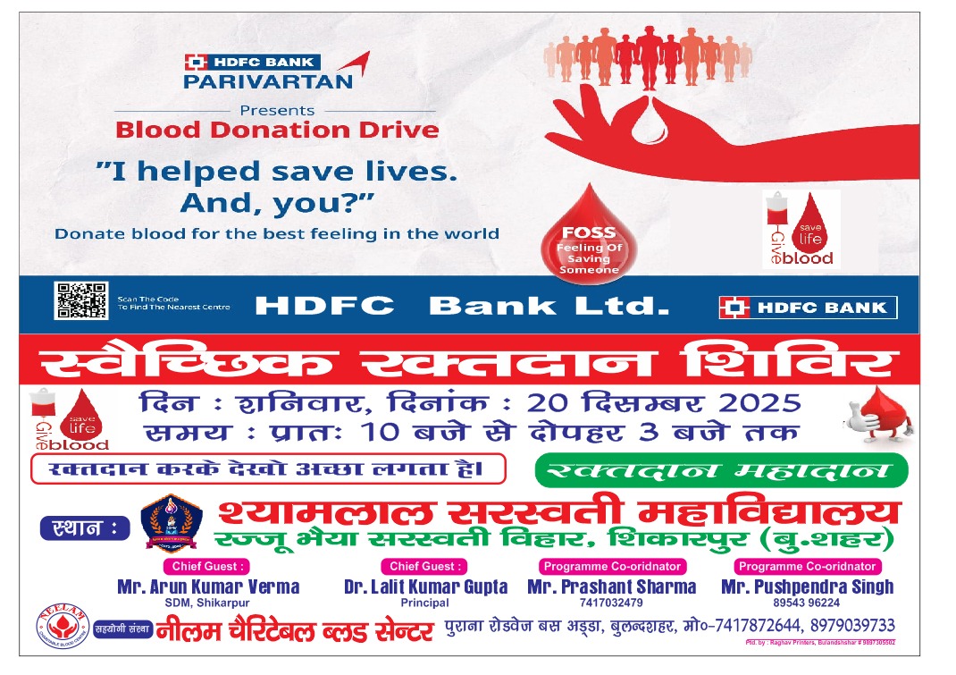 Blood Donation and Health Checkup Camp on 20th December, 2025