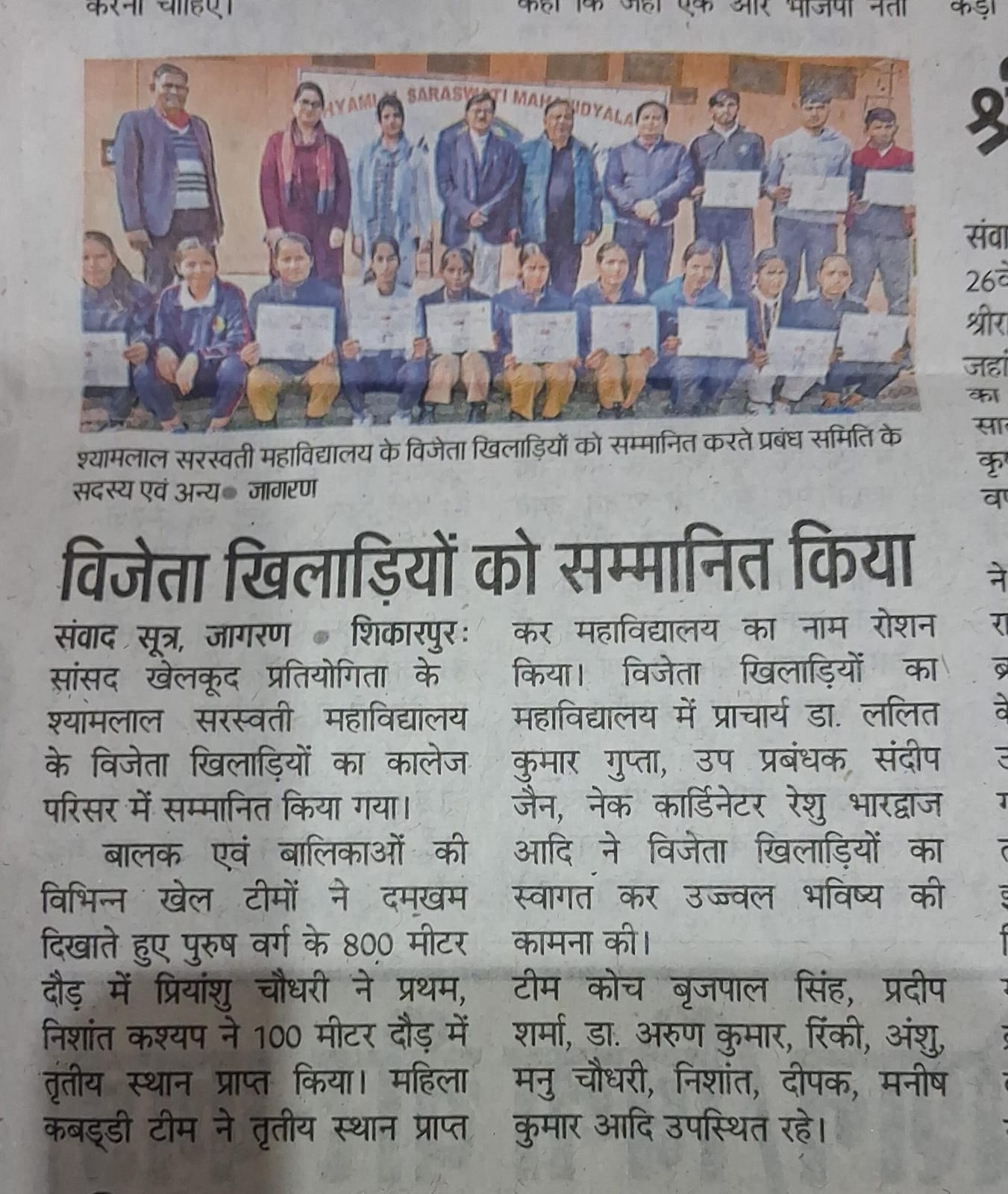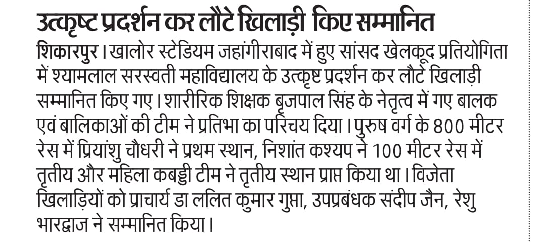 Students welcome after getting awards in Sansad Sports Activities, Bulandshahr